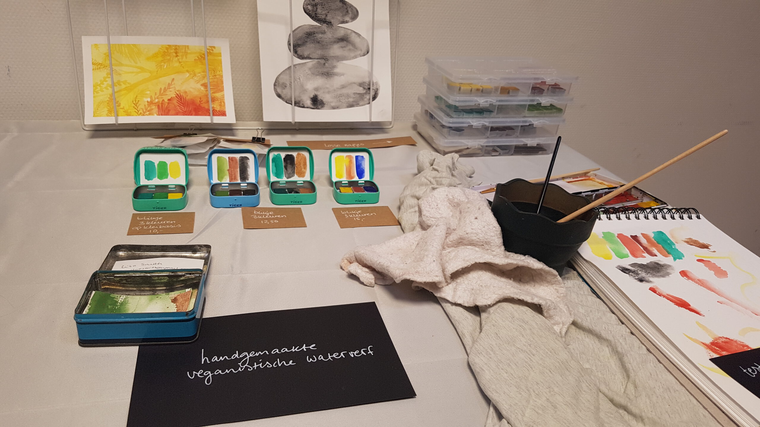 Inspiratie en materiaal haal ik voornamelijk uit planten, stenen en aarde. Ik schilder en teken het liefst lokale én verre landschappen met potloden, gouache, aquarelkrijt en vooral waterverf. Sinds een paar jaar maak ik af en toe een kleine partij veganistische waterverf en ook het maken van planteninkt vind ik interessant.