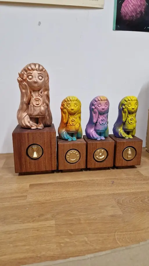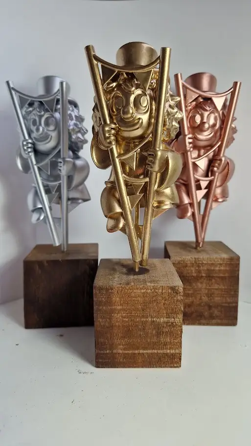 Voor kortdurende projecten maak ik altijd ruimte. Sinds een aantal jaren ontwerp, print en schilder ik prijzen voor Podiumschool. De prijzen voor Jeugdcircus Saranti kwamen daar in 2025 bij. In Heerenveen mocht ik een muurschildering maken in de binnenstad. Tijdens vergaderingen maak ik beeldverslagen. Hoe droog de vergadering ook was, het wordt altijd een vrolijk resultaat.