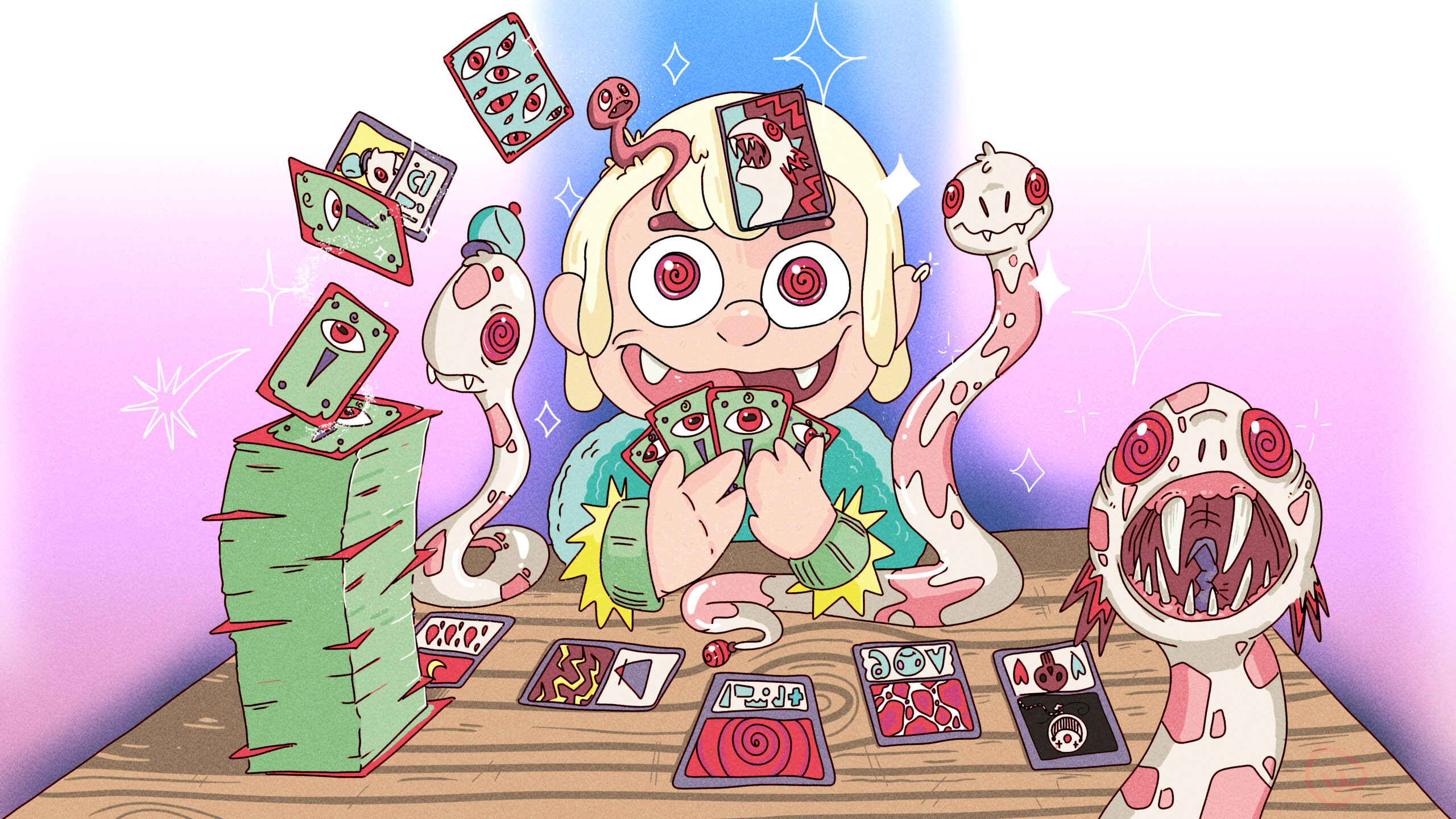 Alles wat ik meemaak en mij op andere manieren inspireert komt als kleurrijke illustraties en strip achtige figureren in schetsboeken terecht. Daarnaast maak ik digitale kunst en soms maak ik hier animaties van. Met behulp van Blender, 3D printers en materialen zoals piepschuim worden deze fantasie werelden tastbaar. Mijn expositie Terratomia (2022) is hier een mooi voorbeeld van. In mijn werk wil ik mensen meenemen naar een felgekleurde wereld vol schattige taferelen en absurde gruwelijkheden.